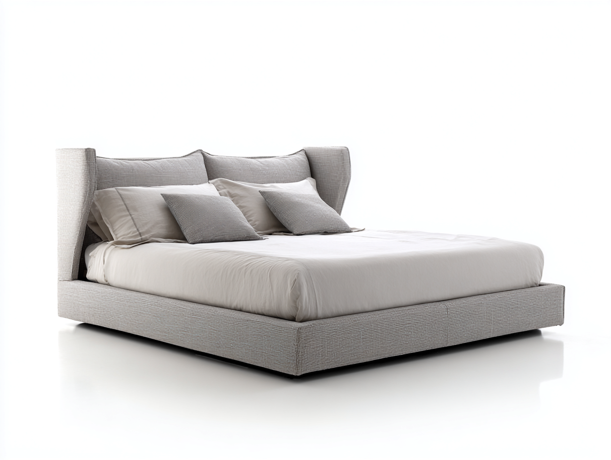 Questo letto matrimoniale imbottito è progettato per arredare la camera da letto con un’estetica contemporanea e accogliente. Le forme morbide della struttura e la testiera avvolgente creano un insieme equilibrato, pensato per un utilizzo quotidiano e per valorizzare ambienti moderni e raffinati.