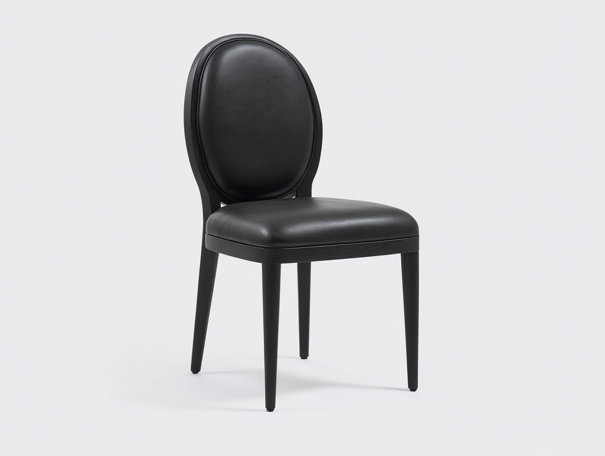 Questa sedia da pranzo imbottita in pelle è pensata per ambienti eleganti e contemporanei, offrendo una presenza raffinata e sobria. Lo schienale ovale e la seduta morbida creano un equilibrio armonioso tra comfort e stile, ideale per sale da pranzo, ristoranti o spazi contract di livello.